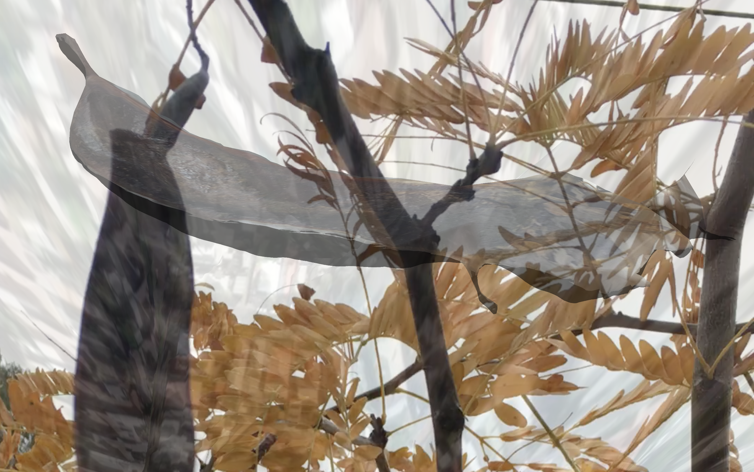 As I learned more about this tree species, my interest spiralled. The Honey Locust seems to occupy polar positions: menace and ornament. It’s described as a fast-growing, shady, leguminous, and attractive tree that’s recommended for planting in urban settings and as animal fodder. The species, indigenous to Turtle Island/North America, is also considered an environmental weed in parts of ‘Australia’. It out-competes native vegetation, and the dense thickets formed in part by its seed spread from grazing animals then prevent those same animals from accessing water sources. ‘Feral’ animals also use the Honey Locust for shelter.
