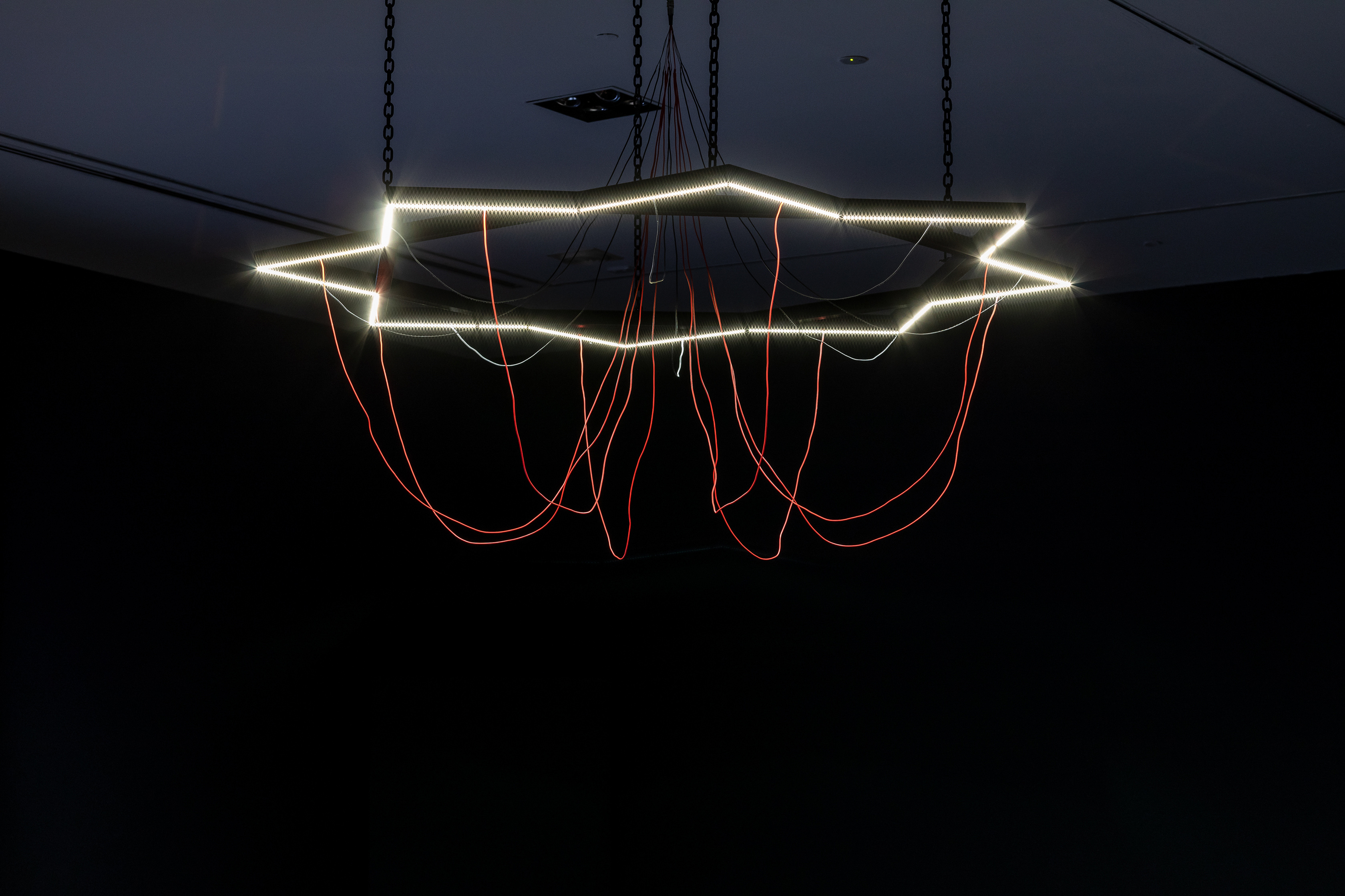 JRI want to continue teasing out this idea of the ‘visible’, and this process with the idea of electricity as well. When I initially saw your exhibition I thought about it critiquing the institution, and the structure of the museum. But on the other hand, you’re now talking about shamanism. I don’t know if I feel totally comfortable talking about shamanism, but I do want to talk about the idea of current, voltage and electricity — if that is also magic, or invisibility being conjured? If that means anything to you, or if it’s just a medium that happened to be workable?