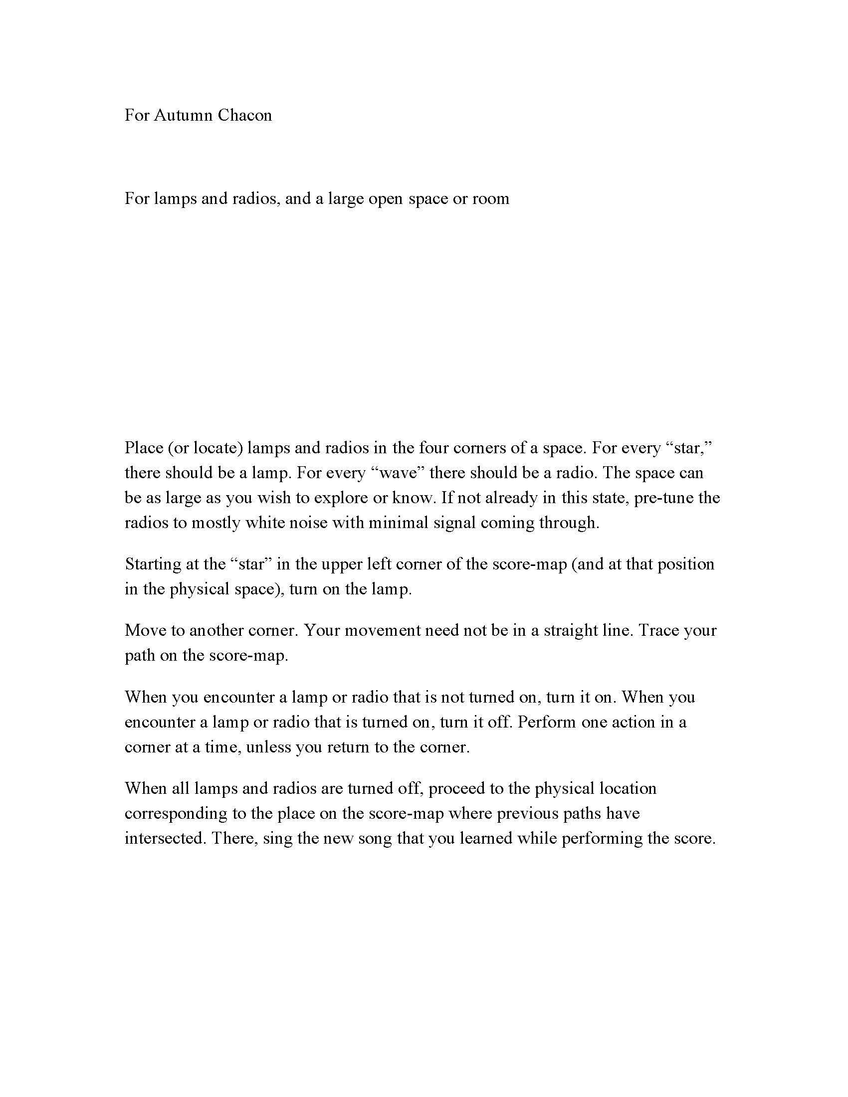 RCIt’s to be performed. And maybe it’s trying to uncover the kinds of human interactions that are possible within the structure of the music, or the performance as well. To me, a score can serve as this way to prompt organisation. The choreography of organisation; the dynamics of those same hierarchies and priorities that I was concerned with, how can we use those for other ways of understanding how we organise and gather? And part of what I’m really interested in, at least formally, is how the score can provide options and choice to a participant. When that happens, then it can also break away from the linearity that we are all stuck inside of. That you’re going to start at point A and end up at point B. I think that can end up being one of the most radical changes we can make when we start gathering.