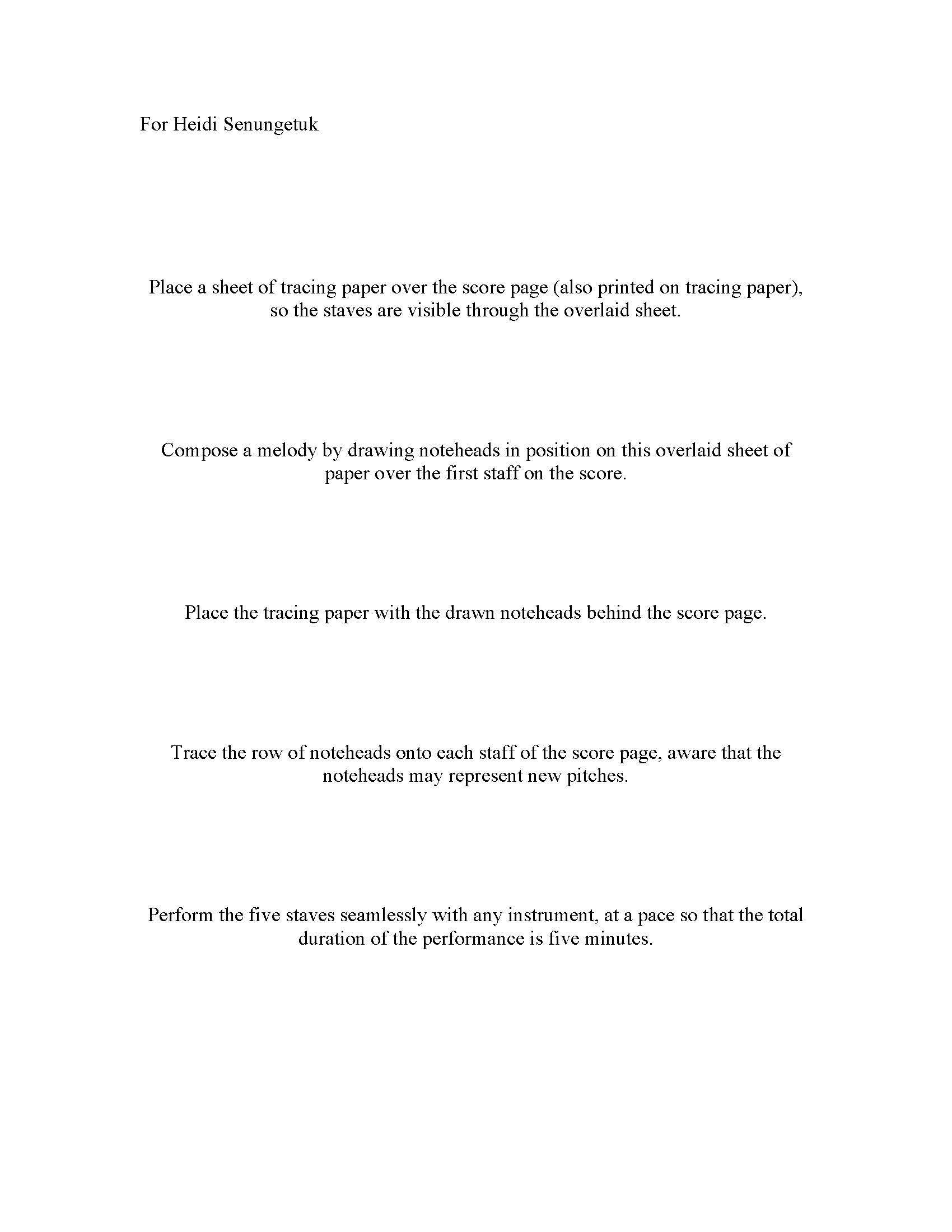 RCWhat I’ve been coming to find with scores, or the way that I write scores, it’s either a prescription or a transcription. I think scores can be a good way of understanding what it is we’re hearing or witnessing. And so, Dispatch, as well as the For Zitkála–Šá scores, are both transcriptions and prescriptions. They are my ways of understanding the situation at Standing Rock; or in the case of the Zitkála–Šá scores, they’re portraiture of people that I work with, that I appreciate, of whose work I am a fan. In turn, those transcriptions can become prompts for continuing that work, or keeping that world alive, the space of protest that is the highly attentive world of being at a situation like Standing Rock. For Dispatch, the idea was to take what I had learned from Standing Rock and to try to apply this to other situations of gathering, where we’re trying to protect a site, to protect the earth, to protect water, to protect a tree. Anything that we feel is in danger. And it is taking into account that this is likely going to be a group action. What are the dynamics, again, of that group gathering? How do we organise? How do we message within ourselves? How do we message outside of our circle of people who are protecting, how do we navigate the hierarchies that may be necessary to accomplish what it is we’re trying to accomplish? I try to understand those dynamics, and within that, there might be some sound making. There will definitely be listening. Same goes with preemptive listening. How do we mediate our own paranoias, our own miscommunications, our own tactfulness as we communicate? These situations of gathering bring together people from very different worlds or different protocols, and very different values. I like to think that the score itself can help mediate, or at least begin to understand mediation through the idea of listening.