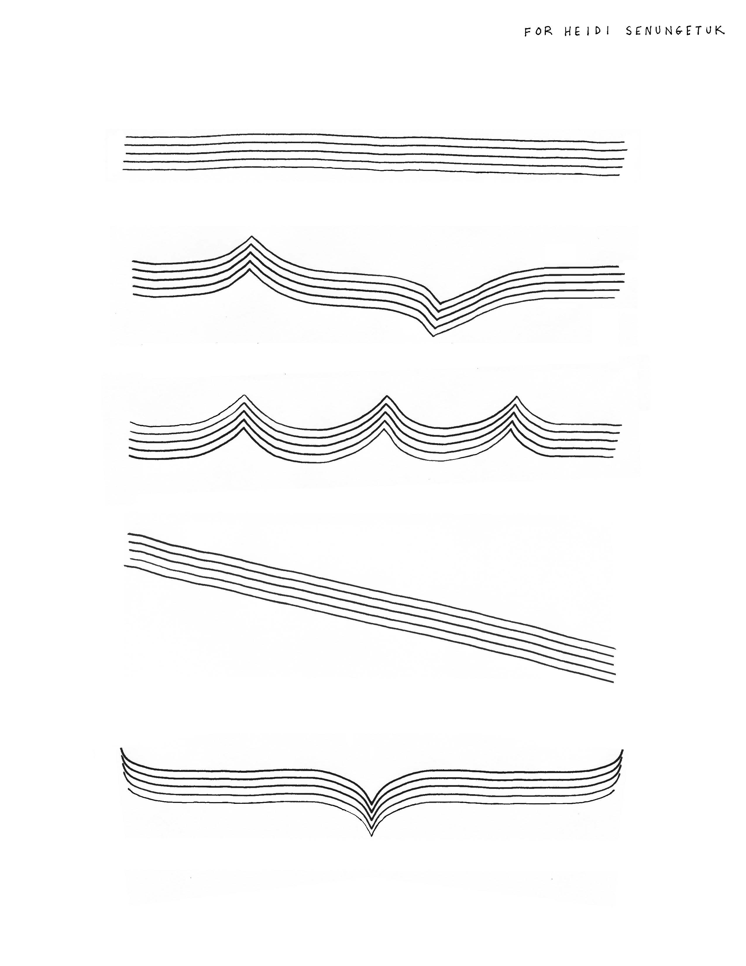 Again, I was not intending these scores to be artworks that were put up on a wall. It wasn’t until Crow’s Shadow in the Umatilla Reservation in Oregon invited me to come to do a printmaking residency, and I was working on these scores and they said, “Let’s print these.” And that’s when they became something that could be put in a frame, and later on in a book, but that was never my intention. The scores were premiered as a complete set at the Whitney Biennial around that time as well. That was the first time there was a concert of all of them being performed by the people that I wrote them for. It was amazing, it’s one of my favourite concerts I’ve not only been involved in but have attended as well. There have since been other kinds of extensions of the pieces. I know Heidi Senungetuk has given hers as an academic lecture. And I think some others have presented those as a set that they’ve toured with and performed in other places. Many of the women met each other for the first time [at the Whitney], I think there has been some collaboration amongst some of them since.