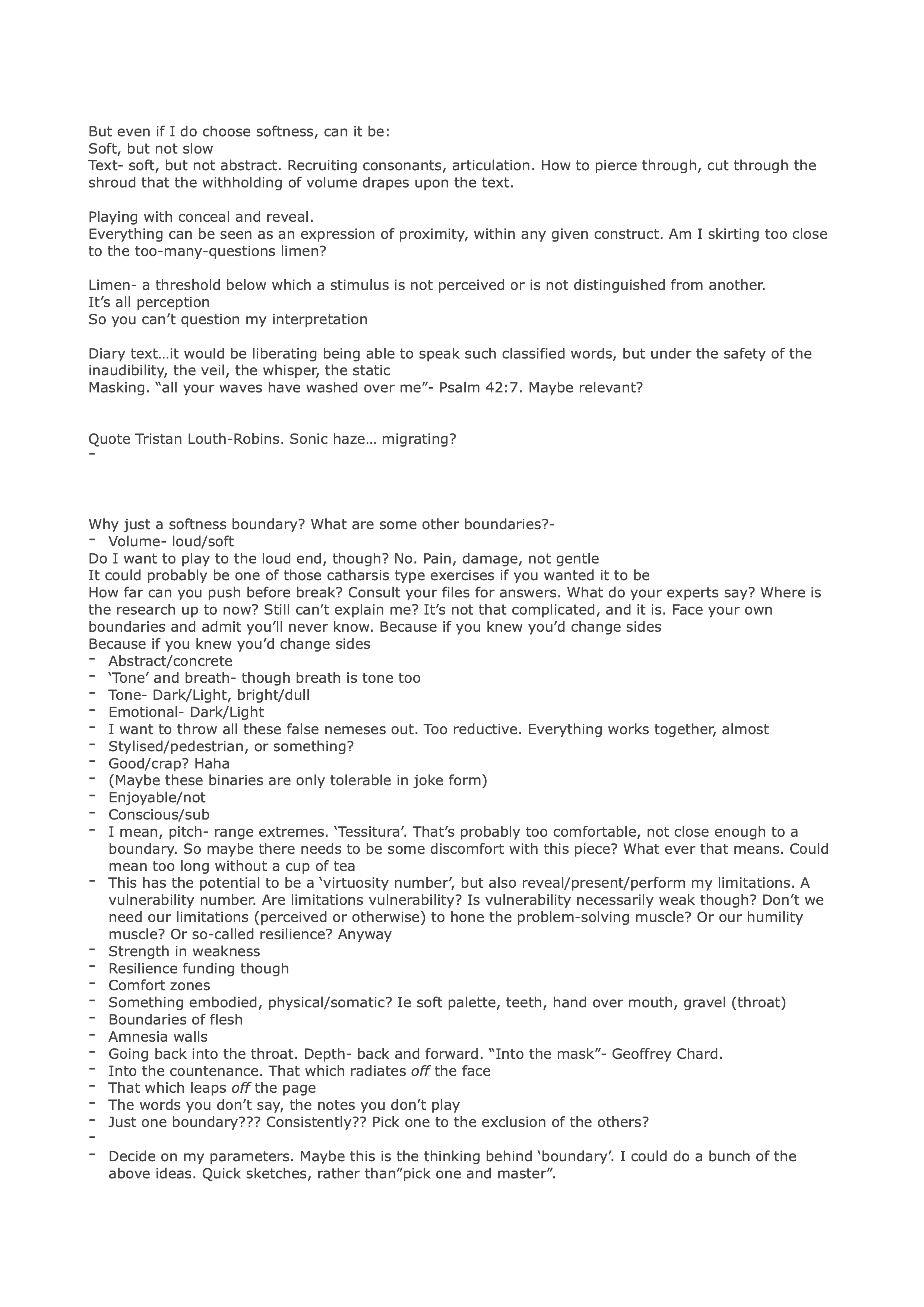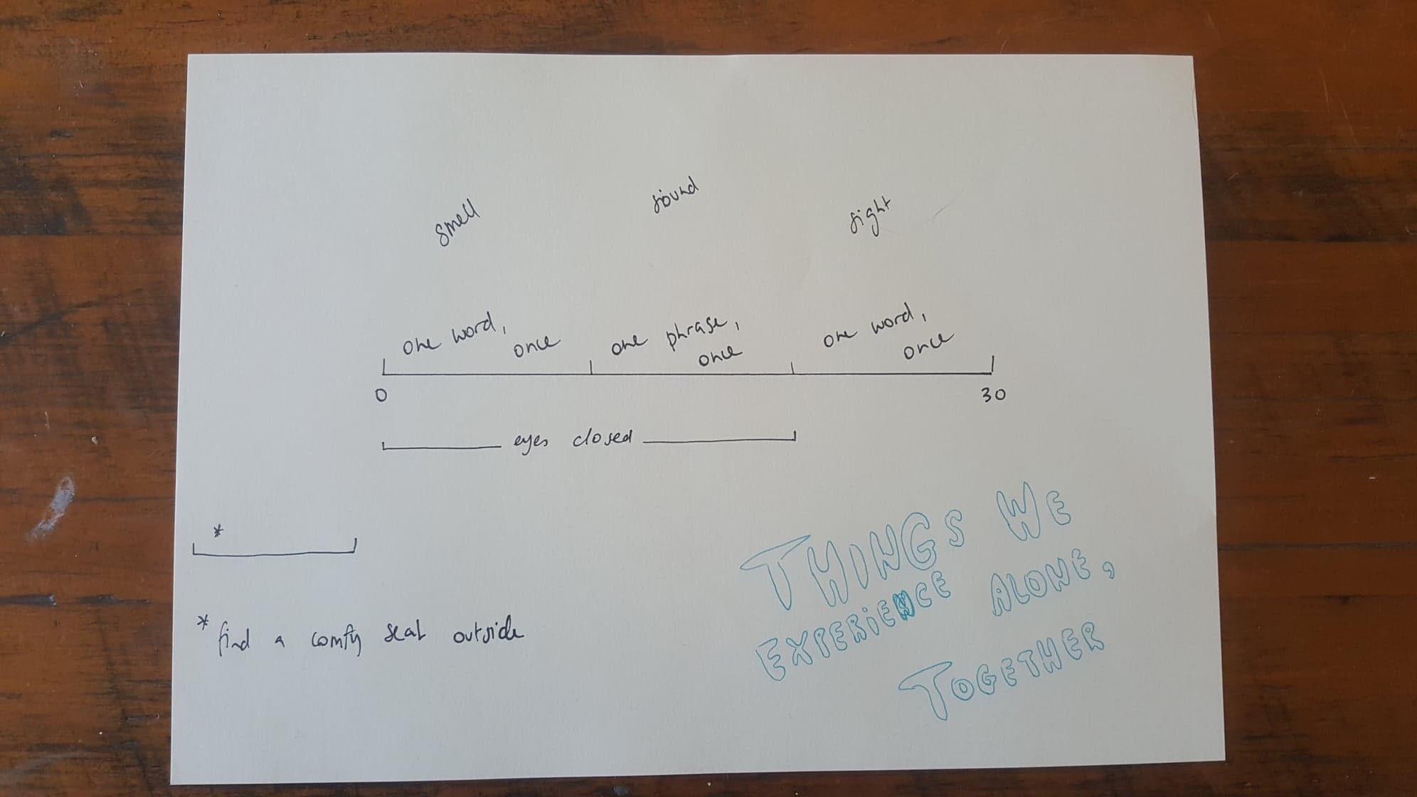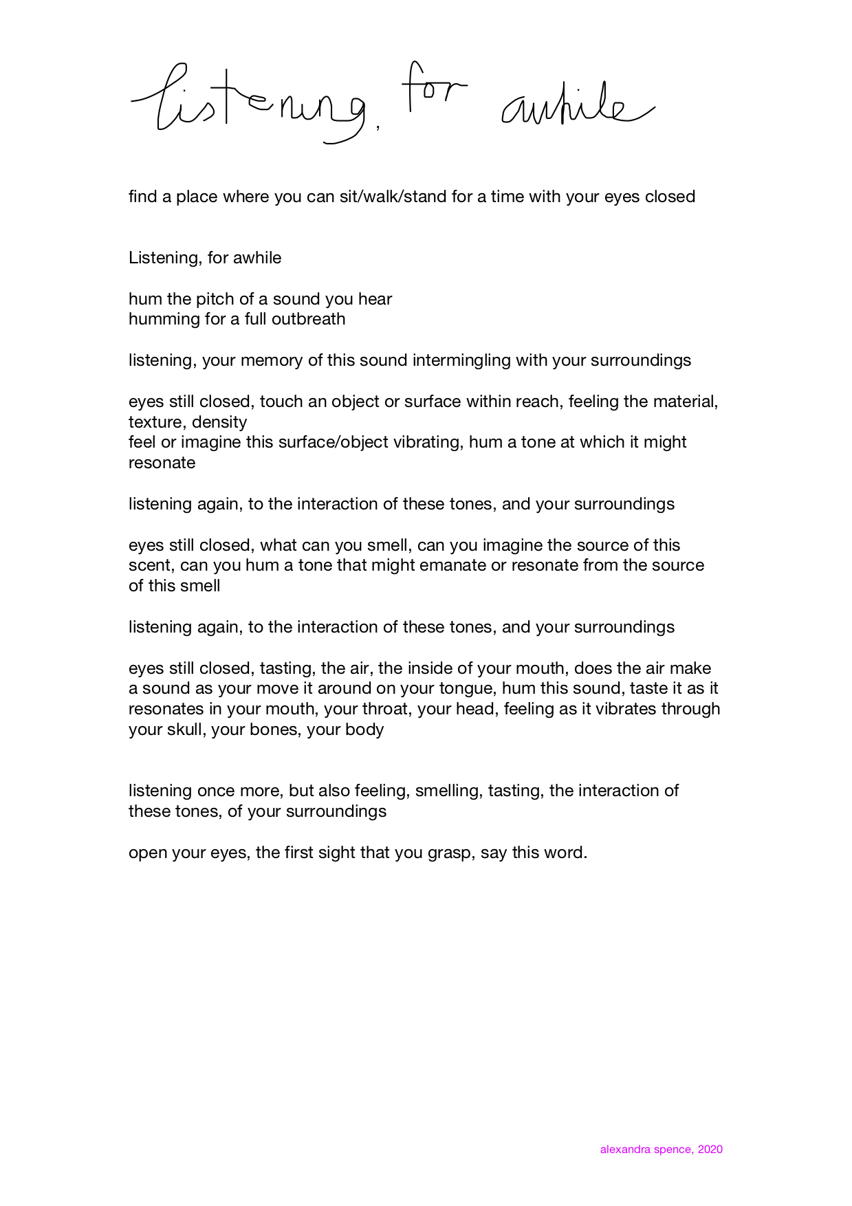 Don’t know if people had time to engage with the Pisaro text score for today. I was talking to her about the inclusion of voice and the instruments, we were discussing how best to word that line so that vocalists could also be involved. (The text in parentheses were my additions to the score)