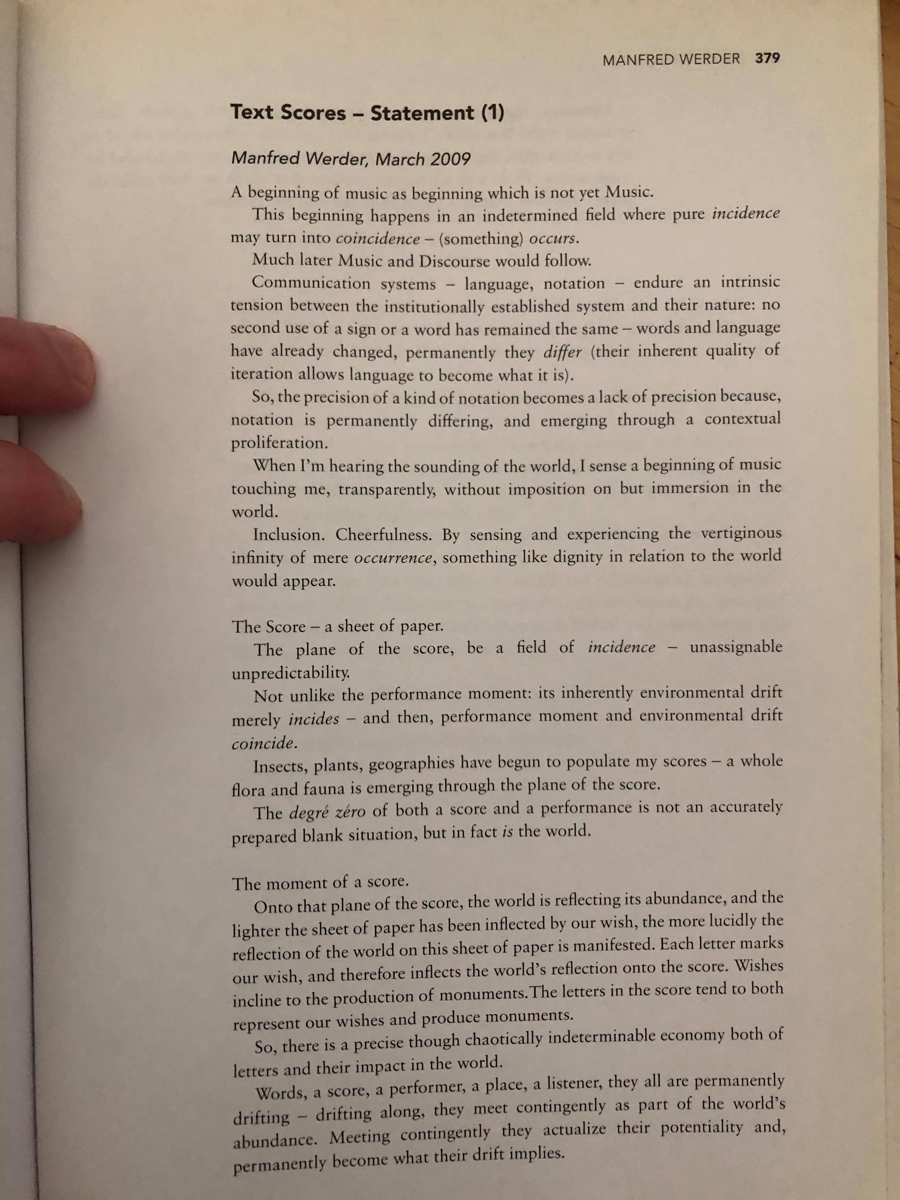 a big part of my interest in text scores — is that they often dissolve these socially constructed distinctions, and blur the boundaries between the composer, performer and audience