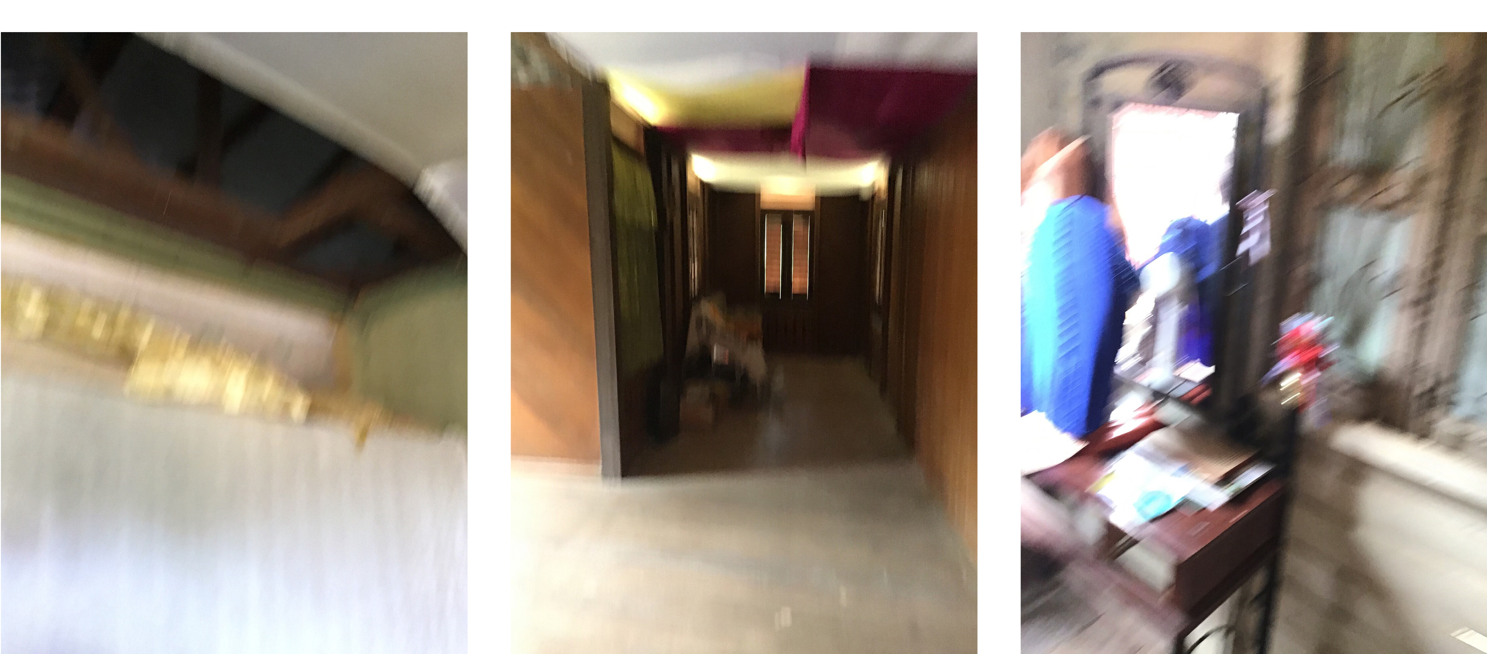 The quiet stillness of a long unbothered wedding room, at the end of the empty hallway.